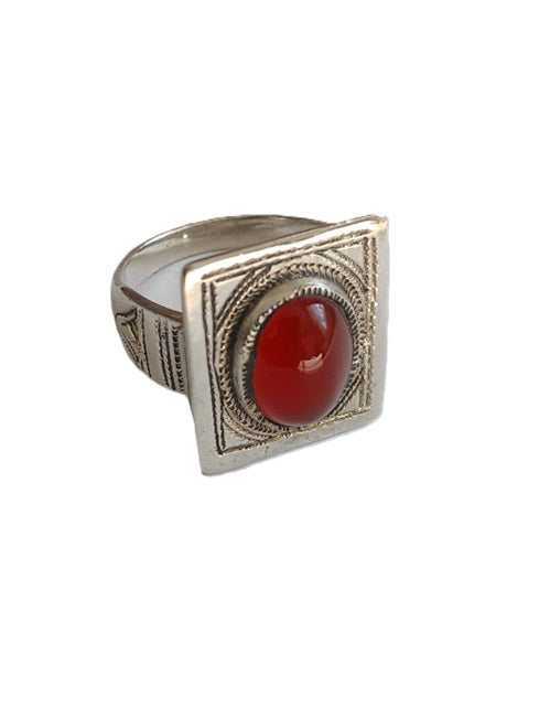 Bague touarègue en argent ciselé ornée d'une pierre agate